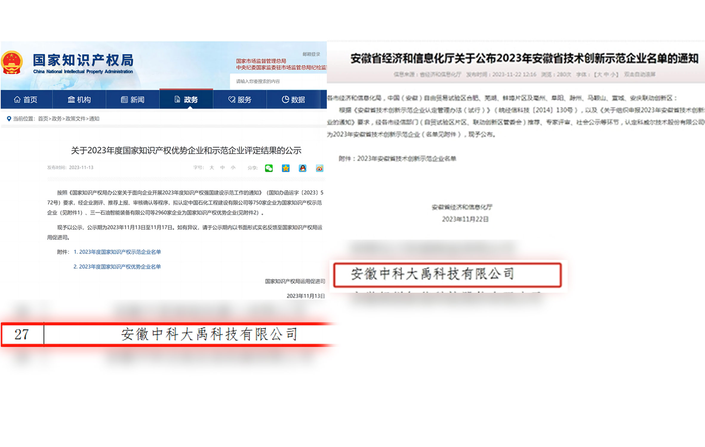 評定為2023年度國家知識產(chǎn)權(quán)優(yōu)勢企業(yè) 入選2023年安徽省技術(shù)創(chuàng)新示范企業(yè)名單