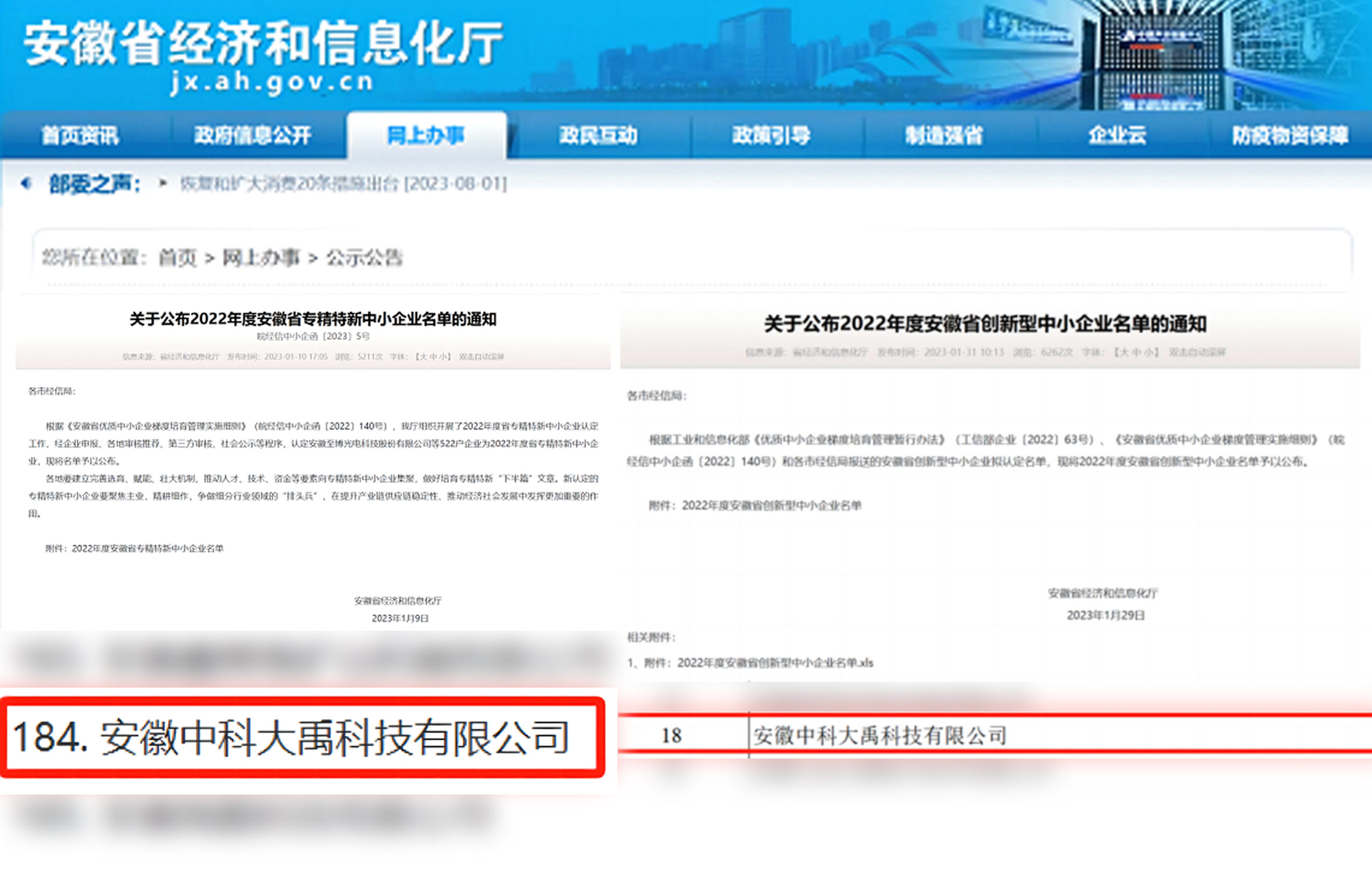 中科大禹榮登2023年度蚌埠市“專精特新”企業(yè)20強